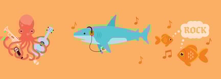 Nede i havet synger de store fiskekorene. Spesielt om natten lager mange fisker lyd.