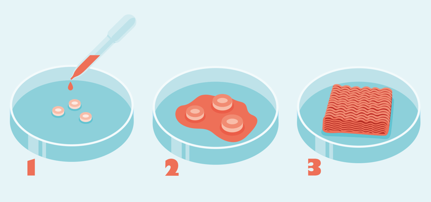 Du har sikkert lært at kjøtt kjem frå dyr. Slik er det ikkje nødvendigvis lenger. Allereie for sju år sidan sette ein nederlandsk forskar tennene i ein hamburgar som var laga i eit laboratorium. Forskaren hadde teke muskelceller frå eit stykke storfekjøtt og fått dei til å vekse vidare i ein næringsrik gelé.