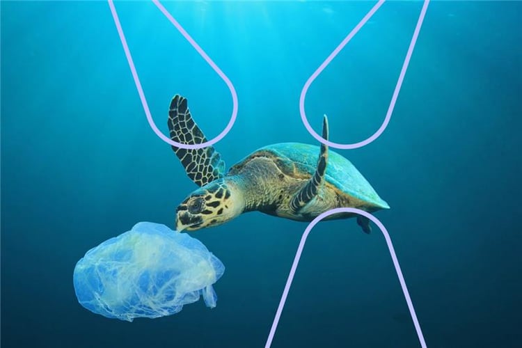 Tenk deg at du er ei havskjelpadde som elskar maneter. Medan du sym rundt i havet så ser du noko mjukt som rører på seg framfor deg. Du jafsar svolten i deg ein bit. Først når det er for seint, forstår du at du har ete ein plastpose og slett ikkje ein manet!