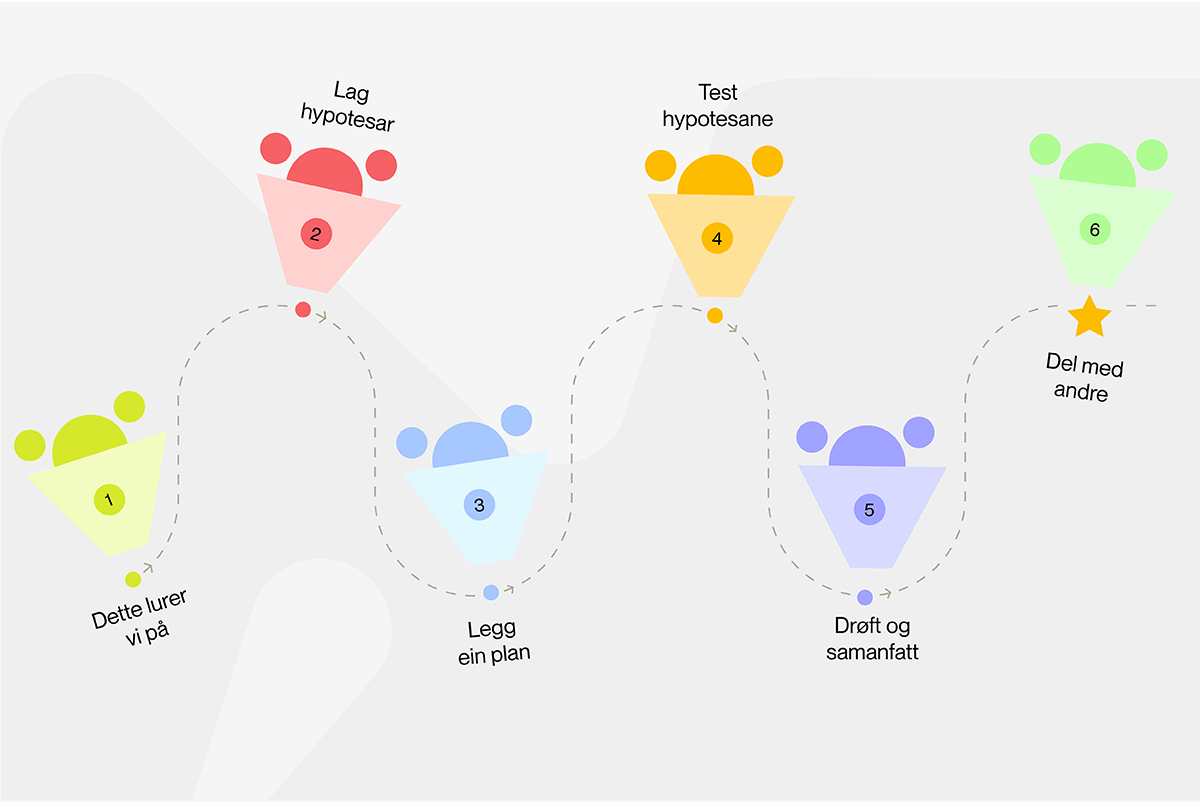 - Oppmuntre elevane til å reflektere over arbeidet dei held på med: Kva har vi funne ut til no? Kva er neste steg?