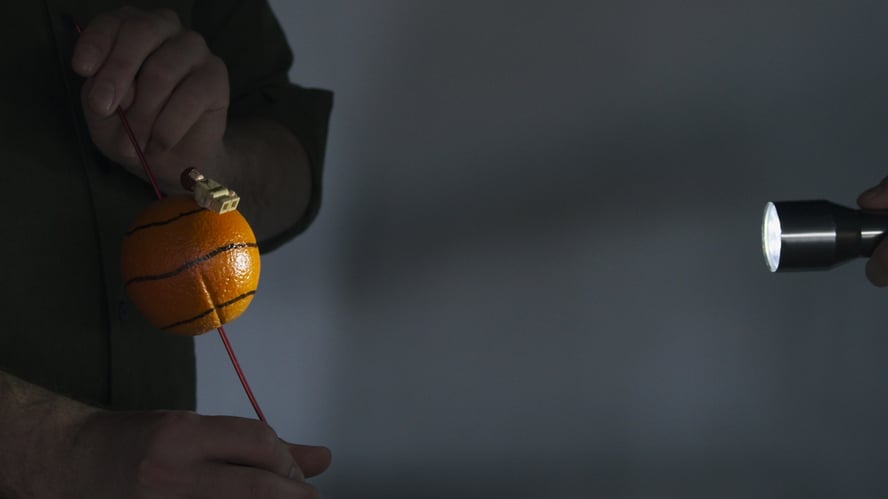 Tegn ekvator og polarsirkelen på appelsinen med en sprittusj.