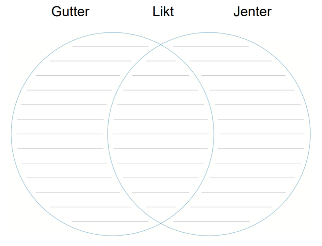 Fyll ut et venndiagram om det som skjer med jenter og gutter i puberteten. Hva er likt, og hva er forskjellig?